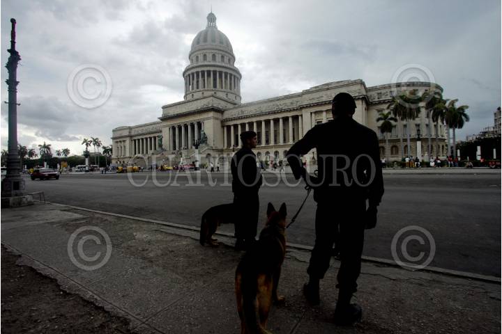 LA HABANA, CUBA 03ABRIL2009.- Famosa por una historia de casi cinco siglos, es reconocida además en el mundo por la variedad de estilos arquitectónicos y el toque de distinción que aporta El Capitolio de La Habana. Los visitantes que acuden cada día a la antigua villa de San Cristóbal de La Habana preguntan casi sin falta por la ubicación de esa construcción, considerada por los especialistas como el segundo punto más alto de la urbe, donde policías vigilan las 24 horas los alrededores. FOTO: MAX NÚÑEZ/CUARTOSCURO.COM