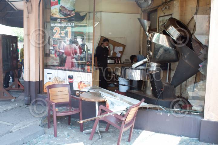 MÉXICO, D.F., 09JUNIO2011.- En el Cafe La Habana ubicado en Bucarreli y Morelos en la colonia Juárez, explotó la maquina tostadora de café lo que ocasionó vidrios rotos y un susto en los comensales. FOTO: MOISÉS PABLO/CUARTOSCURO.COM