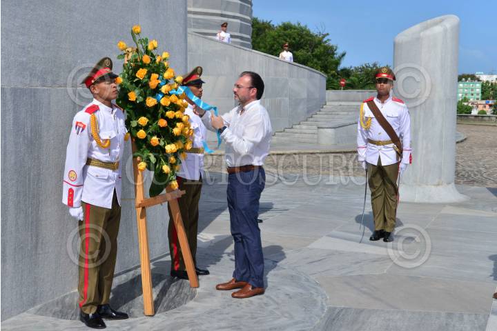 LA HABANA, CUBA, 18AGOSTO2017.- El canciller Luis Videgaray Caso, depositó una ofrenda floral al pie del Monumento Memorial a José Martí, ubicado en la Plaza de la Revolución de la capital cubana durante su visita. FOTO: SRE /CUARTOSCURO.COM