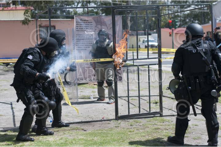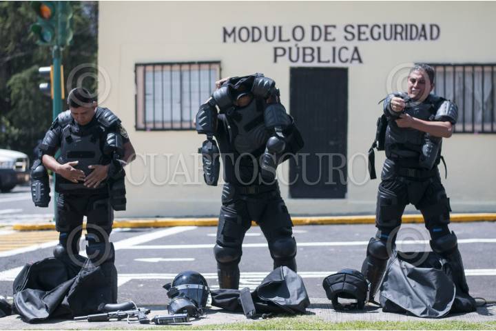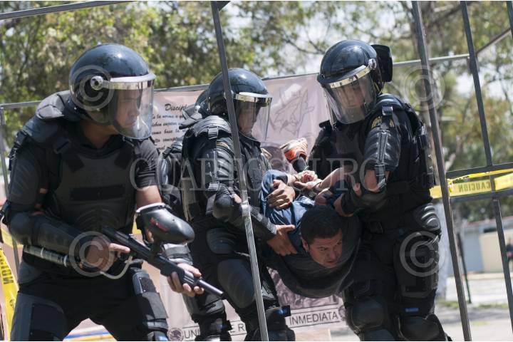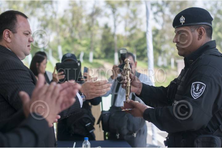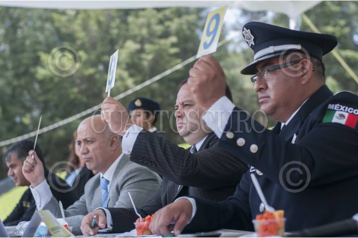MÉXICO, D.F., 29AGOSTO2014.- Antonio Hazael Ruiz Ortega, subsecretario de Sistema Penitenciario; Jesús Rodríguez Almeida, secretario de Seguridad Pública del D.F., y Enrique Francisco Galindo, comisionado general de la Policía Federal, fueron jurados en el Torneo de Grupos Compactos de Reacción e Intervención Penitenciaria en el Instituto de Formación Policial, donde 3 equipos realizaron una demostración de habilidades en caso de algún percance violento por parte de los reos en las cárceles de la ciudad. FOTO: DIEGO SIMÓN SÁNCHEZ /CUARTOSCURO.COM