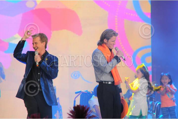 MÉXICO, D.F., 02DICIEMBRE2011.- La noche de hoy arrancó la edición 2011 del Teletón la cual busca recaudar fondos mediante donaciones, para la manutención y construcción de los Centros de Rehabilitación Teletón. En el número inicial se presentaron Alex Syntek, Lucero, Emmanuel y su hijo Alexander Hacha. FOTO: FRANCISCO RODRÍGUEZ/CUARTOSCURO.COM