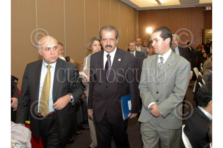 MÉXICO, D.F., 17JUNIO2008.- Haik Nikogosian, jefe de la secretaria del convenio del marco para el control del Tabaco de la Organización Mundial de Salud y José Angel Cordoba Villalobos, Secretario de Salud, durante la segunda reunión del grupo de estudio sobre alternativas economicamente sostenibles al cultivo del Tabaco. FOTO: EDUARDO MORALES/CUARTOSCURO.COM
