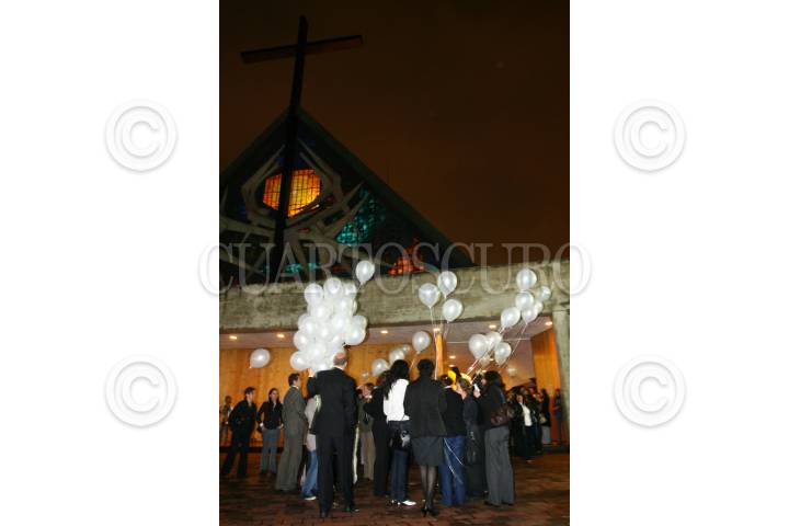 O, D.F., 11AGOSTO2008.- Se ofició la tercera misa en memoria del adolecente Fernando Martí Haik secuestrado y asesinado en dias pasados, dicho joven contaba con catorce años de edad y era hijo del empresario Alejandro Martí. En la imagen familiares y amigos soltaron globos blancos. FOTO: SAÚL LÓPEZ/CUARTOSCURO.COM