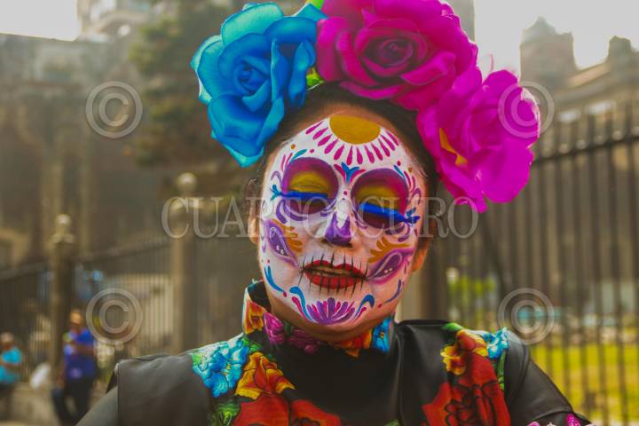 CIUDAD DE MÉXICO. 31OCTUBRE2024.- Negra Ofrenda en el Zócalo de la Capital Mexicana, que fue inaugurada anoche por parte del Gobierno de la Ciudad. Turistas nacionales y extranjeros disfrutan de esta tarde soleada. FOTO: VICTORIA VALTIERRA/CUARTOSCURO.COM