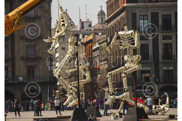 CIUDAD DE MÉXICO. 25OCTUBRE2024.- Trabajo de la Mega Ofrenda que se instalará en el Zócalo de la Ciudad. Disfraces máscaras, todo tipo de objetos para la celebración de día de muertos. FOTO: VICTORIA VALTIERRA/CUARTOSCURO.COM