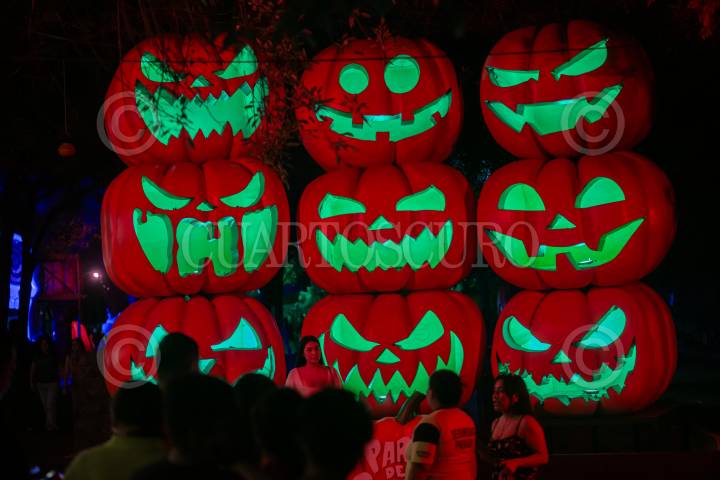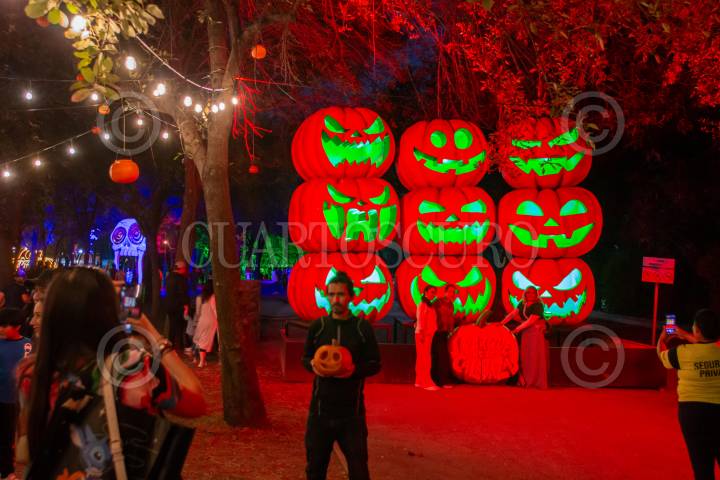 MONTERREY, NUEVO LEÓN, 25OCTUBRE2024.- Cientos de personas acuden al Festival de la Calabaza para tomarse fotografías con diferentes instalaciones de calabazas, en el interior del parque Fundidora, previo a la celebración de Halloween. FOTO: GABRIELA PÉREZ MONTIEL / CUARTOSCURO.COM