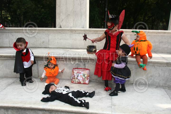 MÉXICO, D.F., 30OCTUBRE2009.- Padres de familia realizaron un recorrido por la alameda central, con niños disfrazados previo al día de muertos. FOTO: SAÚL LÓPEZ/CUARTOSCURO.COM