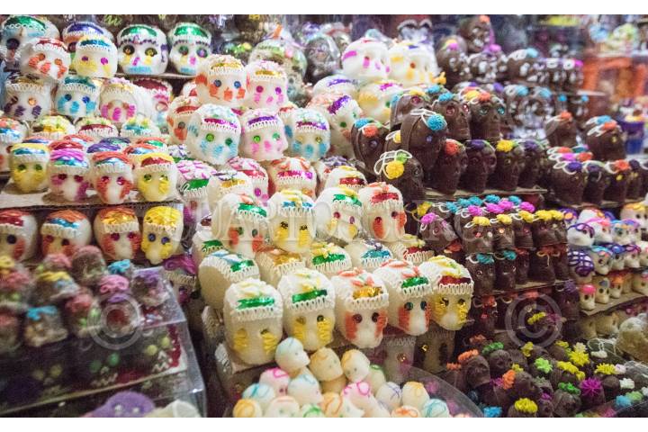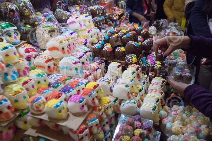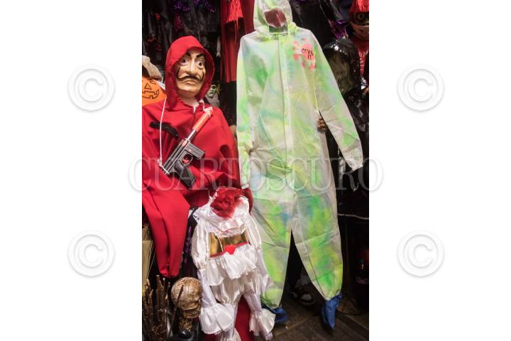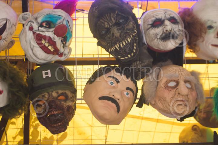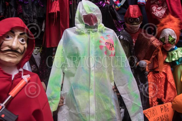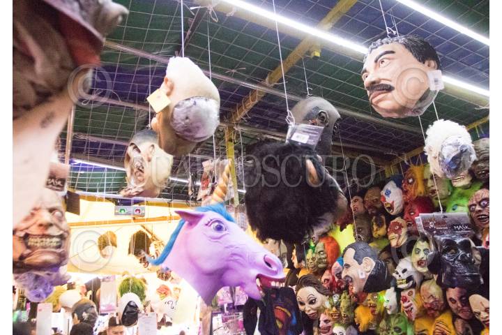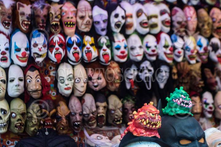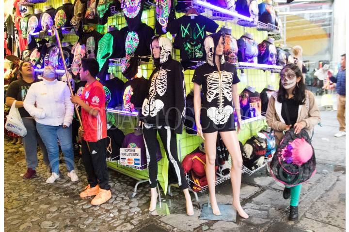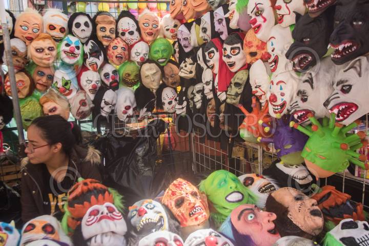 CIUDAD DE MÉXICO, 31OCTUBRE2019.- Máscaras, maquillaje, disfraces, calaveritas de dulce, flores, abundan en los mercados de la Ciudad. Mañana se celebra el día de los Santos inocentes. FOTO: VICTORIA VALTIERRA /CUARTOSCURO.COM