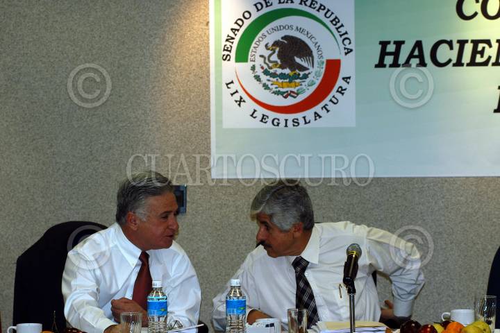 MEXICO, D.F. 06OCTUBRE2005.- El senador Fauzzi Hamdan y Alonso Tamez, subsecretario de Hacienda durante la reunión con la comisión de Hacienda y Credito Público del senado de la República. FOTO: Luis Mora/CUARTOSCURO.COM
