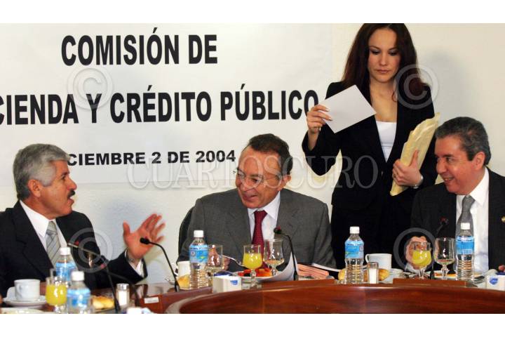 México D.F19DIC2003.-Los senadores Demetrio Sodi (PRD), Fauzi Hamdan (PAN) y el diputado Gustavo Madero (PAN) durantes los trabajos de la reunión de la Comisión de Hacienda y Crédito Público. FOTO: Eunice Adorno/CUARTOSCURO.COM