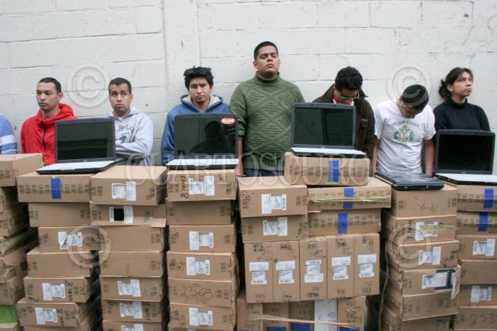 MÉXICO, D.F., 27 DE OCTUBRE DE 2008.- Una banda de de 8 integrantes fueron detenidos y presentados por parte de la Procuraduría Capitalina, debido al presunto robo de computadoras portatiles. FOTO: VICTORIA VALTIERRA/CUARTOSCURO.COM
