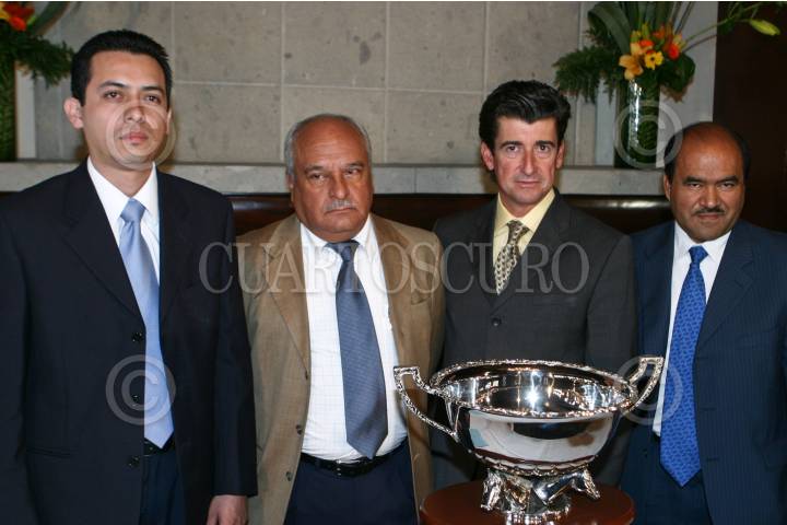 MÉXICO, D.F., 28MAYO2008.- Aaron Paredes, José Manuel, presidente para el desarrollo y fomento de la hípica mexicana; Sergio Alaman, director general del Hipódromo de las Américas al termino del sorteo de posiciones de los caballos que competirán en la edición 63 del Handicap del Hipódromo de las Américas el próximo sábado. FOTO: RODOLFO ANGULO/CUARTOSCURO.COM