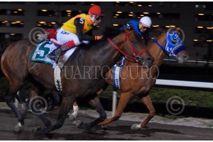 MÉXICO D.F. 31MAYO2008.-Momentos del final de la carrera del LXIII Handicap de las Américas que se llevo esta noche en el Hipódromo de las Américas en la que fue el caballo con el numero 5 el que salio vencedor de la carrera. FOTO: FELIPE CASTELLANOS/CUARTOSCURO.COM
