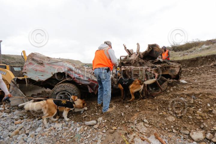 Con perros de rastreadores autoridades buscan a una niña de 10 años que desapareció cuando junto con su familia fueron arrastrados por la corriente durante la lluvia provocada por la tormenta Hanna.