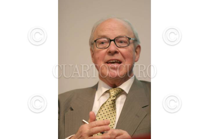 MEXICO D.F 19 ENERO 2005.- El ex inspector de armas de la ONU, Hans Blix, durante su ponencia a los alumnos de la Universidad Iberoamericana. FOTO: Eunice Adorno/CUARTOSCURO.COM
