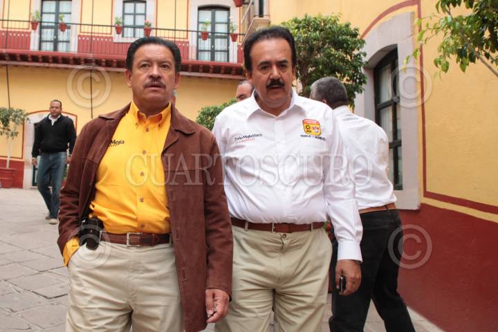 ZACATECAS, ZACATECAS, 19JUNIO2010.- Carlos Navarrete, presidente de la mesa directiva del Senado de la República y Antonio Mejía Haro, candidato a la gubernatura de Zacatecas, se reunieron por la mañana durante una gira de apoyo a la campaña proselitista del "El Tigre Toño Mejía". FOTO: CUARTOSCURO.COM