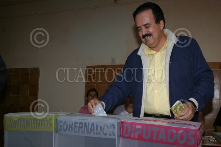 JUCHIPILA, ZACATECAS, 04JULIO2010.- Antonio Mejía Haro, candidato a gobernador por la coalición "Zacatecas nos une", por los partidos PRD-Convergencia, , emitió su voto en la escuela primaria Garcia de la Cadena, en la comunidad del Remolino del municipio de Juchipila, Zacatecas. El día de hoy 4 de julio se celebran elecciones de candidatos a gobernador, regidores y diputados locales en este estado. FOTO: MISAEL VALTIERRA/CUARTOSCURO.COM