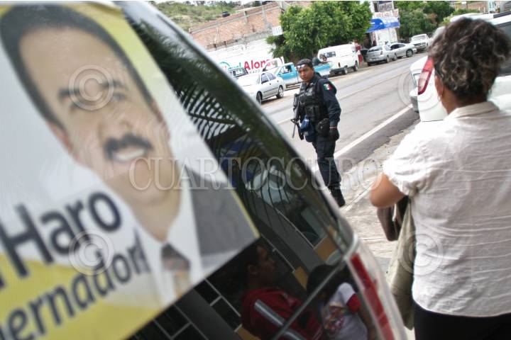 ZACATECAS, ZACATECAS, 04JULIO2010.- Un convoy de la Policía Federal brinda protección a las instalaciones de la casa de campaña y escolta en sus recorridos al candidato por la coalición "Zacatecas nos une", Antonio Mejía Haro, el día de hoy 4 de julio día en que se celebran elecciones a candidatos a gobernador, regidores y diputados locales en este estado. FOTO: MISAEL VALTIERRA/CUARTOSCURO.COM
