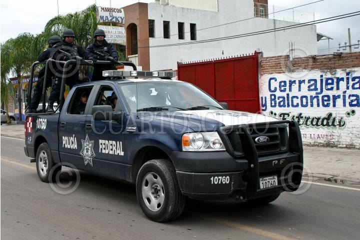 JUCHIPILA, ZACATECAS, 04JULIO2010.- Un convoy de la Policía Federal brinda protección a las instalaciones de la casa de campaña y escolta en sus recorridos al candidato por la coalición "Zacatecas nos une", Antonio Mejía Haro, el día de hoy 4 de julio día en que se celebran elecciones a candidatos a gobernador, regidores y diputados locales en este estado. FOTO: MISAEL VALTIERRA/CUARTOSCURO.COM