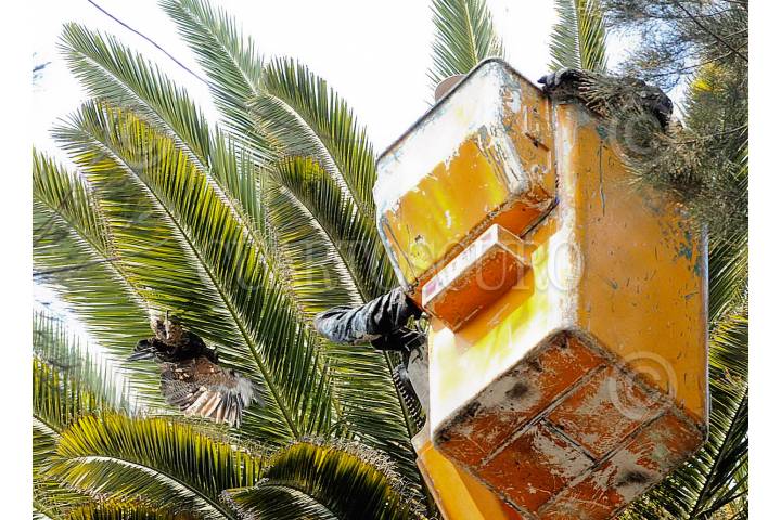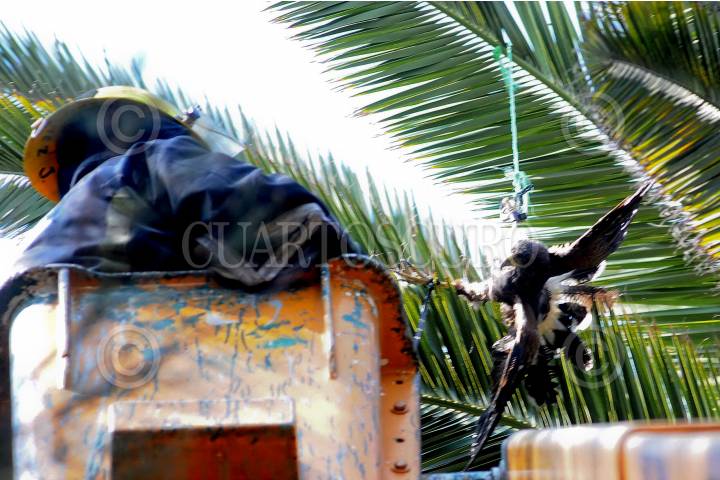 MÉXICO D.F., 22DICIEMBRE2008.- Un Halcón de raza Harris fue encontrado en lo alto de una palmera enredado en las calles Tesoro y Congreso de la Unión en la colonia Tres Estrellas perímetro de la Delegación Gustavo A. Madero. FOTO: JULIETA MORA/CUARTOSCURO.COM