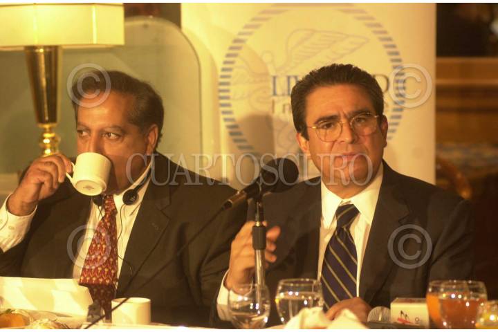 México D.F, 13ENE2004.- Sanjiv Chopra director de Educación Médica enl la escuela de Medicina de Harvard y José Luis Arredondo García, director de Lievemed Institute ofrecieron una conferencia para hablar sobre las enfermedades infecciosas que pueden ser utilizadas como armas biologicas. FOTO: Eunice Adorno/CUARTOSCURO.COM