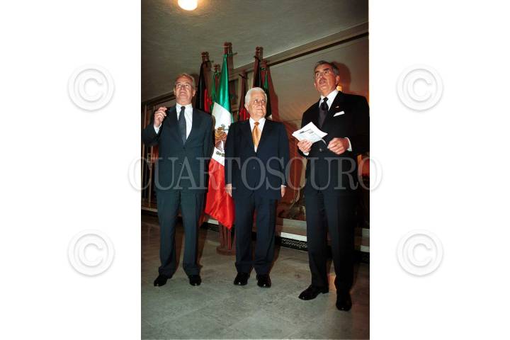 Winried Hassemer, vicepresidente de la Suprema Corte de Justicia en Alemania, David Genaro Gongora Pimentel, presidente de la Suprema Corte de Justicia de México, W-lf Ruthart Born, embajador de Alemania en México, durante la recepción que ofrecio el diplomatico con motivo de la visita de los miembros de la máxima instancia de justicia en Alemania. FOTO: Susana Navarrete/CUARTOSCURO.COM