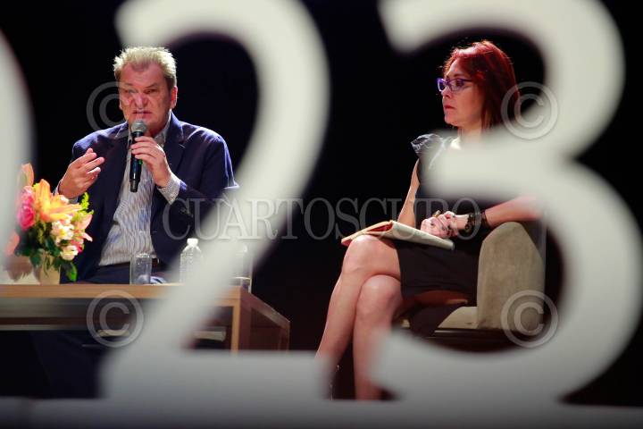 QUERÉTARO, QUERÉTARO, 10SEPTIEMBRE2023.- El escritor serbio Goran Petrovic sostuvo una conversación con Mariana H, durante el el cuarto día de actividades del Hay Festival Querétaro 2023. FOTO: CÉSAR GÓMEZ/CUARTOSCURO.COM