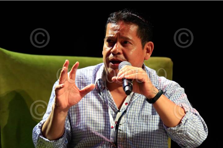 QUERÉTARO, QUERÉTARO, 10SEPTIEMBRE2023.- El escritor Julián Herbert durante el el tercer día de actividades del Hay Festival Querétaro. FOTO: CÉSAR GÓMEZ/CUARTOSCURO.COM