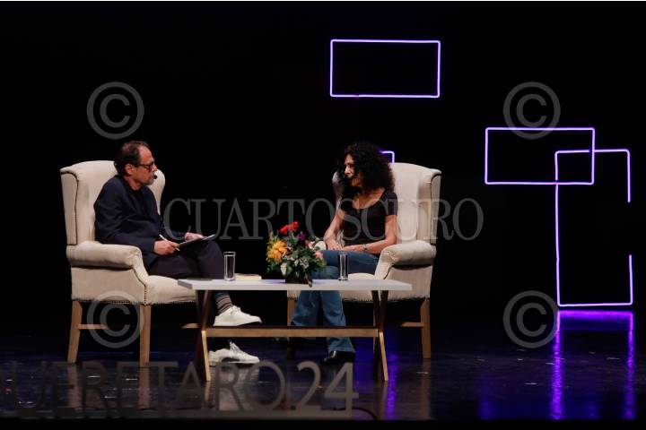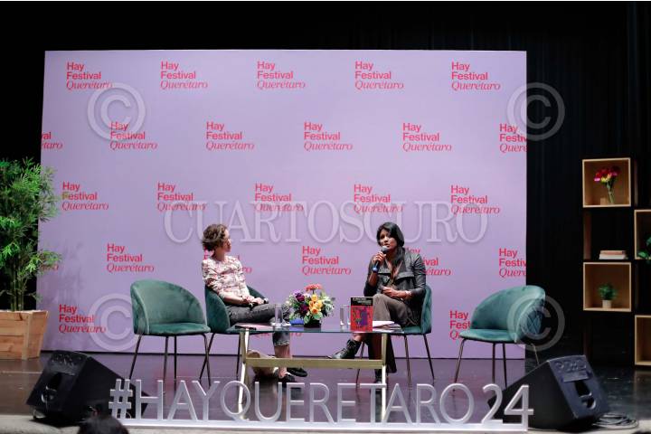 QUERÉTARO, QUERÉTARO, 06SEPTIEMBRE2024.- La escritora Leila Guerrero, en conversación con Jan Martinez, periodista, durante el segunda día de actividades del Hay Festival Queretaro 2024. FOTO: CÉSAR GÓMEZ/CUARTOSCURO.COM