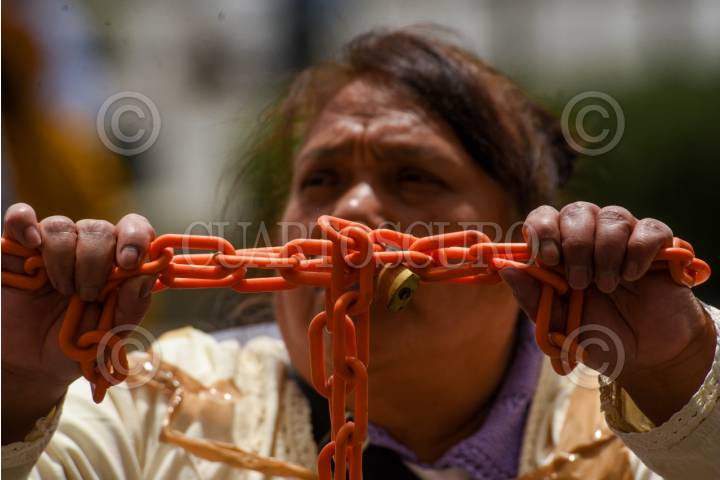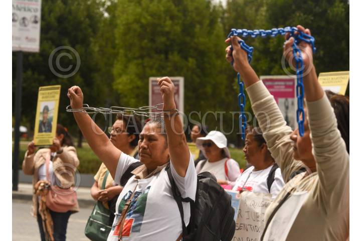 TOLUCA, ESTADO DE MÉXICO, 15SEPTIEMBRE2025.- Mujeres con cadenas en las manos e integrantes del colectivo Haz Valer Mi Libertad caminaron por el centro de Toluca previo a los festejos del Grito de Indepedencia, por los injustamente presos en el Estado de México, dieron un Grito de Libertad ante la falta de justicia para sus presos, han sido atendidos por las dependencias pero no han obtenido justicia. FOTO: CRISANTA ESPINOSA AGUILAR/CUARTOSCURO.COM