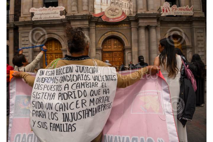 TOLUCA, ESTADO DE MÉXICO, 28MAYO2025.- Integrantes del Colectivo Haz Valer Mi Libertad se manifestaron en la ciudad de Toluca denunciando un nulo avance en la revisión de los casos de sus familiares injustamente presos, a unos días de llevarse a cabo la elección del Poder Judicial, en donde serán electos ministros, magistrados y jueces. Piden no caer más en actos de corrupción y condenar a inocentes, que apliquen bien la justicia. FOTO: CRISANTA ESPINOSA AGUILAR /CUARTOSCURO.COM