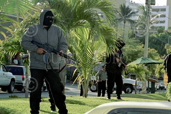 Con un impresionante operativo se realizó la reconstrucción de hechos donde los elementos de la PGR portaban armas larga y usan pasamontañas para evitar su identificacion. FOTO: EL DEBATE DE MAZATLAN .
