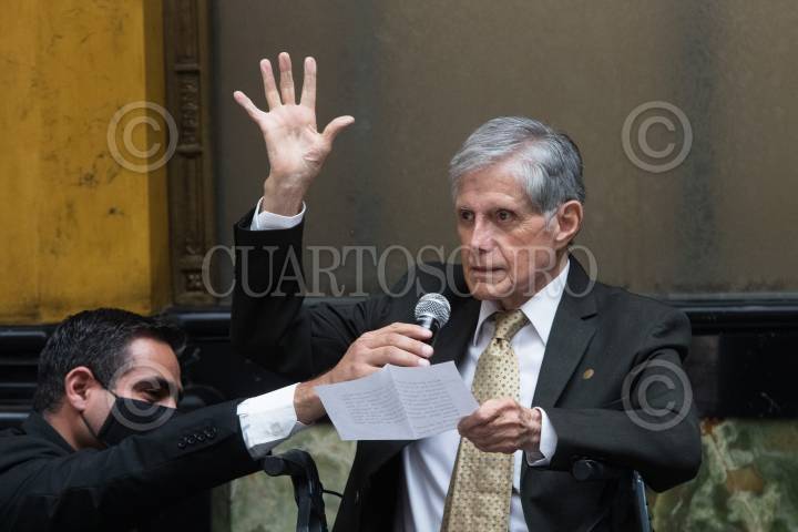 Héctor Bonilla, primer actor mexicano, falleció a la edad de 83 años, debido al cáncer que padecía desde el año 2019, así lo confirmó la Secretaría de Cultura Federal. En la imagen, el actor durante la ceremonia de develación de la placa de la obra "Defendiendo el Cavernicola" en 2005. FOTO: ARCHIVO/GERMÁN ROMERO/CUARTOSCURO.COM