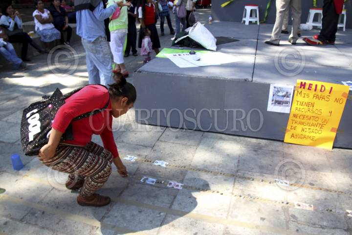 OAXACA, OAXACA, 24ENERO2014.- Payasos pertenecientes al grupo "Amigos en recuperación" realizaron este día una colecta en beneficio de la bebe de 7 meses Heidi Lorenzo quien padece atresia biliar y requiere un trasplante de hígado, para lo cual se requieren 2 millones de pesos, la menor es atendida en el hospital regional de San Pablo Huixtepec en donde es cuidada de cerca por su padre, pero que al ser de escasos recurso económicos no puede costear la intervención. FOTO: ARTURO PÉREZ ALFONSO /CUARTOSCURO.COM