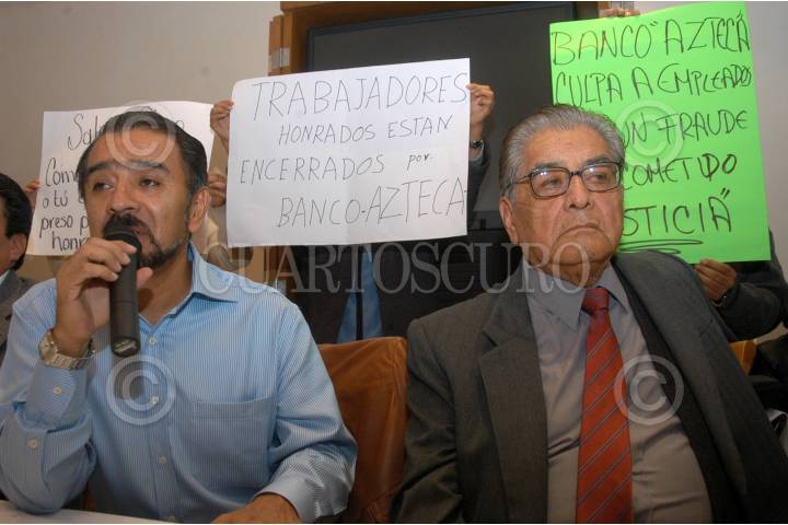 MÉXICO D.F. 25SEPTIEMBRE2006.- Francisco Henández, lider sindical de los telefonistas y Cuauhtemoc Paleta, secretario de la CROC, en conferencia de presnsa dieron a conocer el apoyo para los trabajadores de "Banco Azteca" detenidos por querer formar un sindicato. FOTO: GUILLERMO PEREA/CUARTOSCURO.COM
