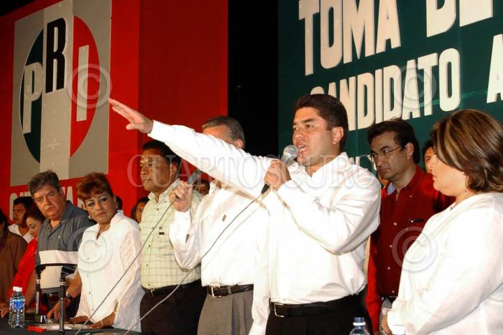 QUINTANA ROO 13NOVIEMBRE2004.- Félix González tomó protesta como candidato a la gubernatura del estado por el PRI, al evento asistió Roberto Madrazo, presidente del CEN y el acxtual gobernador del estado Joaquín Hendricks. FOTO: Juan Flores/CUARTROSCURO.COM