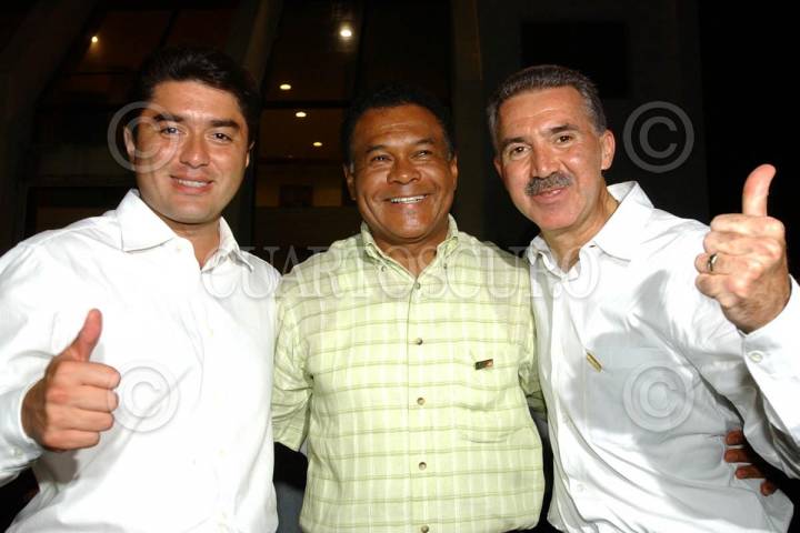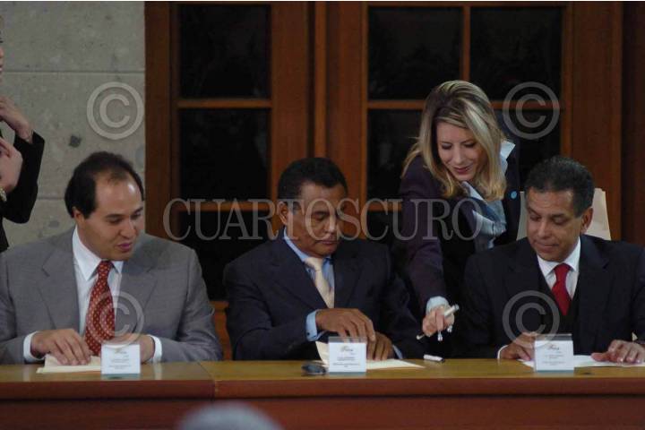 MEXICO, D.F. 10DICIEMBRE2004.- Lázaro Cárdenas Batel, gobernador de Michoacán, Joaquín Hendricks, gobernador de Quintana Roo y Fidel Herrera, gobernador de Veracruz durante la firma del Compromiso Nacional para el Combate a la Tortura. FOTO: CUARTOSCURO.COM