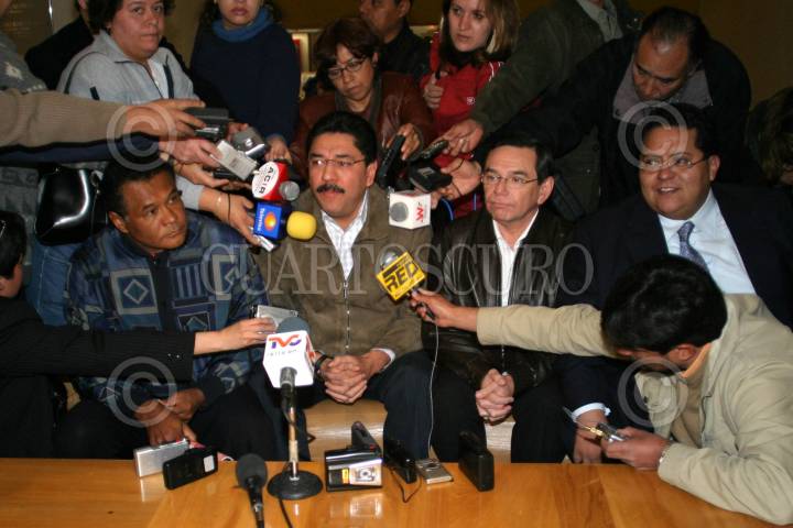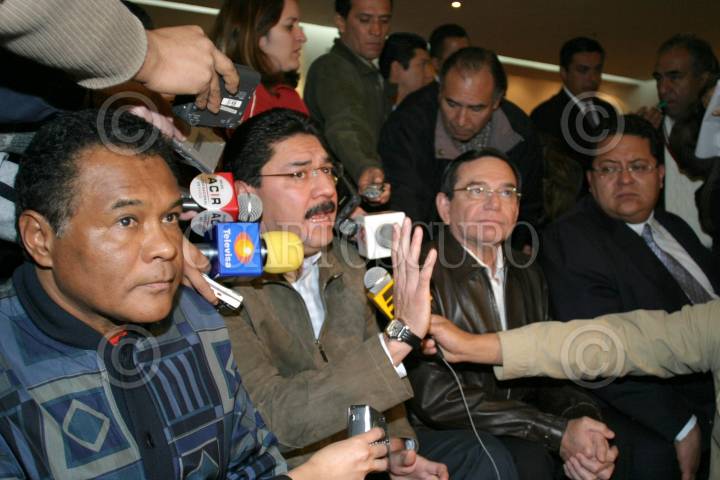 MEXICO, D.F. 22ENERO2004.- Joaquín Hendricks, gobernador de Quintana Roo, Ulices Ruíz, gobernador de Oaxaca, Carlos Hurtado, gobernador de Campeche y Manuel Andrade Díaz, gobernador de Tabasco, ofrecieron una conferencia de prensa al termino de una reunión que sostuvieron conocido hotel de la ciudad de México. FOTO: Nelly Salas/CUARTOSCURO.COM