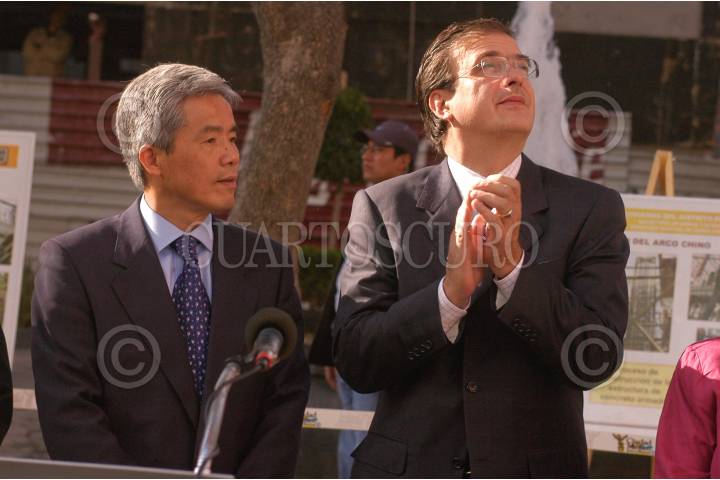 MÉXICO D.F., 16FEBRERO2008.- Yim Hengmin, embajador de China y el jefe de gobierno capitalino Marcelo Ebrard, durante la inauguración del Arco Chino en el centro de la ciudad. FOTO: IVAN MENDEZ/CUARTOSCURO.COM