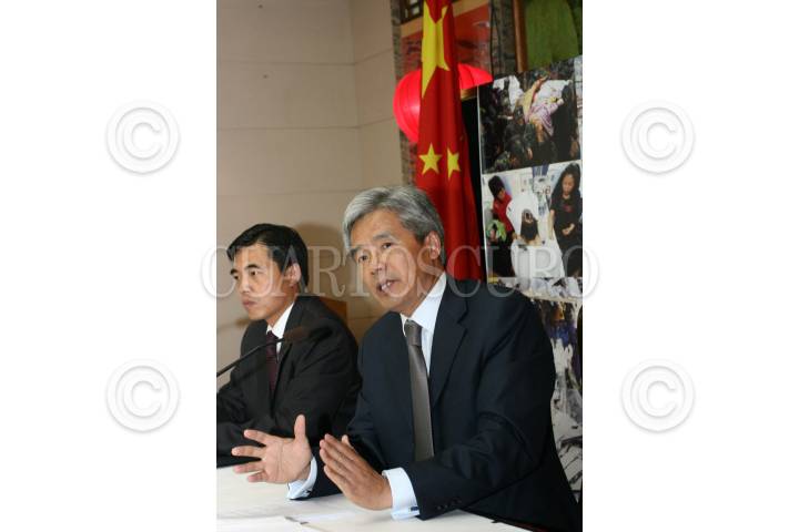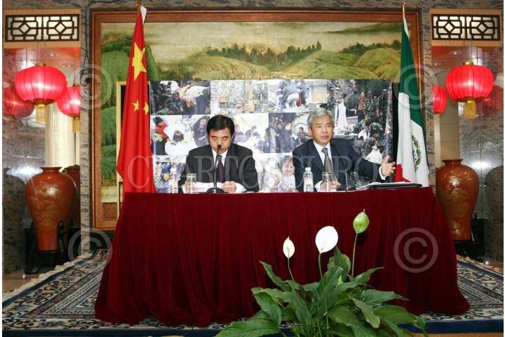 MÉXICO, D.F., 14MAYO2008.- El embajador de México en China Yin Hengmin acompañadpo de Yao fei, jefe de sección politica de la embajada, ofrecieron una conferencia de prensa donde dió a conocer cifras del devastador terremoto de 7.8 grados Richter que sacudio a China el pasado 12 de Mayo. El embajador agradeció la buena voluntad del pueblo mexicano, y reiteró que la embajada dara a conocer las cuentas bancarias donde se podra depositar dinero a los damnificados. FOTO: SAUL LOPEZ/CUARTOSCURO.COM