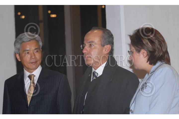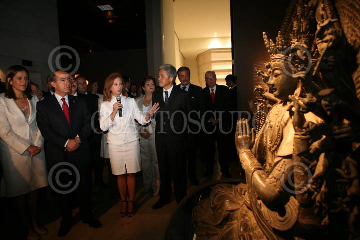 MONTERREY, NUEVO LEON, 21SEPTIEMBRE2007.- Margarita Zavala, Felipe Calderón Hinojosa, Presidente de México y Yin Hengmin, embajador de China, durante la inauguración del Museo Noreste que alberga la exposición "Buda Guanyin" en el marco del Forum Universal de las Culturas. FOTO: ALFREDO GUERRERO/CUARTOSCURO.COM