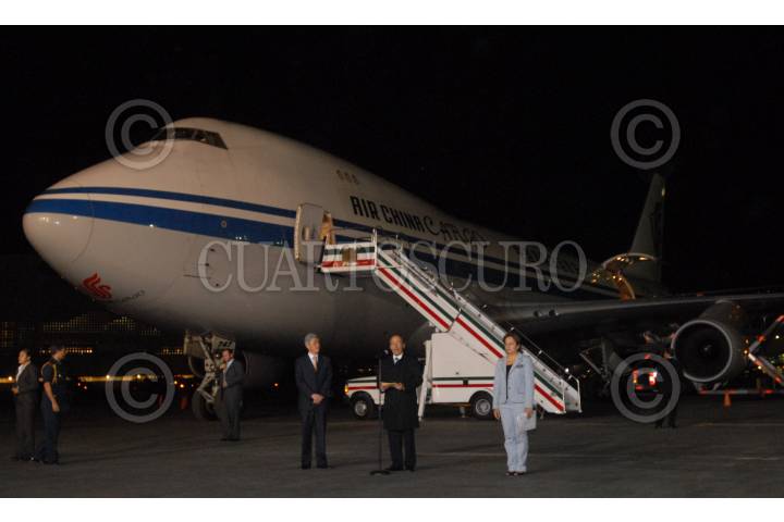 MÉXICO, D.F., 01MAYO2009.- La noche de ayer llego el apoyo del gobierno chino que envió a México para enfrentar la emergencia sanitaria del virus de la influenza humana. La donación fue de cinco millones de dólares, un millón en efectivo y cuatro en insumos. Esto se dió en el hangar presidencial. FOTO: ALBERTO VERA/CUARTOSCURO.COM