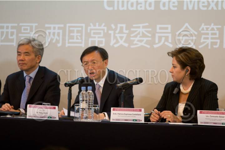 MÉXICO D.F., 29JULIO2010.- Patricia Espinosa, titular de la Secretaria de Relaciones Exteriores, acompañada de Yin Hengmin, Primer Ministro de la Republica Popular China, durante la Inauguración de IV Reunión de la Comisión Binacional Permanente México-China, esto en las instalaciones de esta secretaria. FOTO: GUILLERMO PEREA/CUARTOSCURO.COM