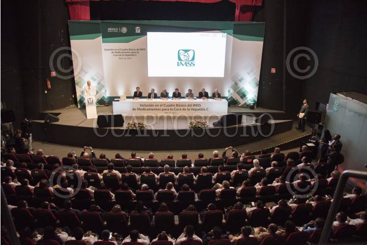 CIUDAD DE MÉXICO, 10ABRIL2017.- Decenas de médicos y miembros del sector salud, asistieron a la ceremonia de la inclusión del tratamiento de la cura del Hepatitis C al Cuadro Básico del IMSS, la cual fue encabezada por Mikel Arriola, director del Instituto Mexicano del Seguro Social (IMSS). FOTO: TERCERO DÍAZ /CUARTOSCURO.COM