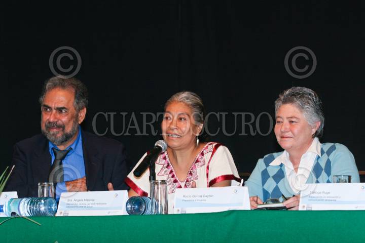 MÉXICO, D.F. 15OCTUBRE2009.- Raúl Enríquez Habib, investigador del Instituto de Química de la UNAM, Ángela Méndez, autoria del libro "Herbolaria Oaxaqueña para la Salud", Rocío García Gaytán, presidenta del Inmujeres, durante la presentación de dicho libro en el Museo del Carmen. FOTO: ISAAC ESQUIVEL/CUARTOSCURO.COM