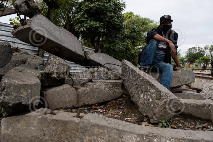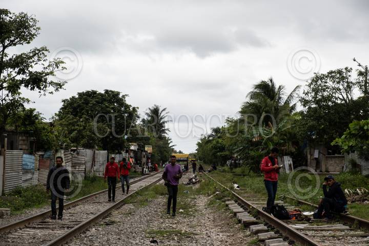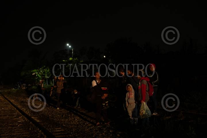 Migrantes hondureños esperan sobre las vía cercana a la Estación del municipio para tomar el tren y continuar su camino rumbo a Estados Unidos, objetivo que comparten familias que han sido victimas del cambio climático, desempleo y violencia.