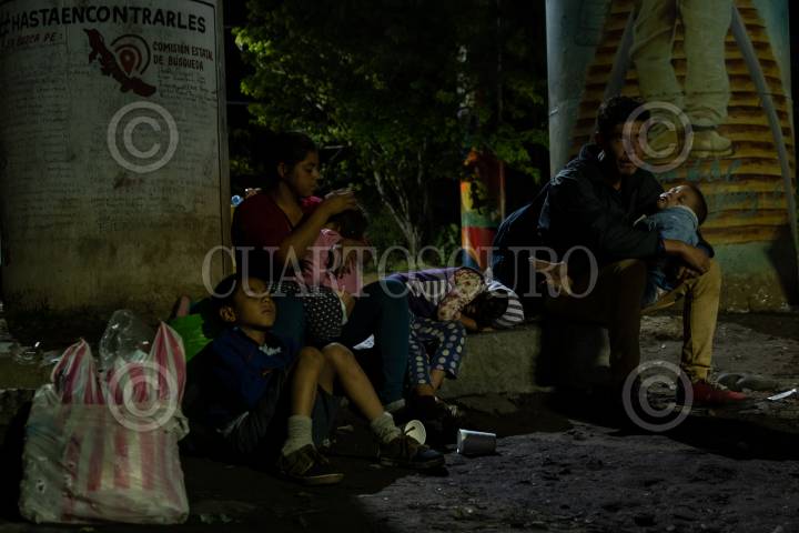 Familia migrante descansa unas horas junto al cruce de "La Bestia"