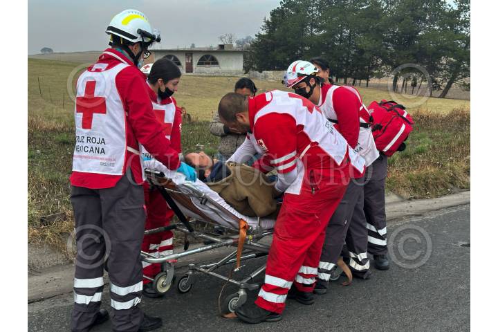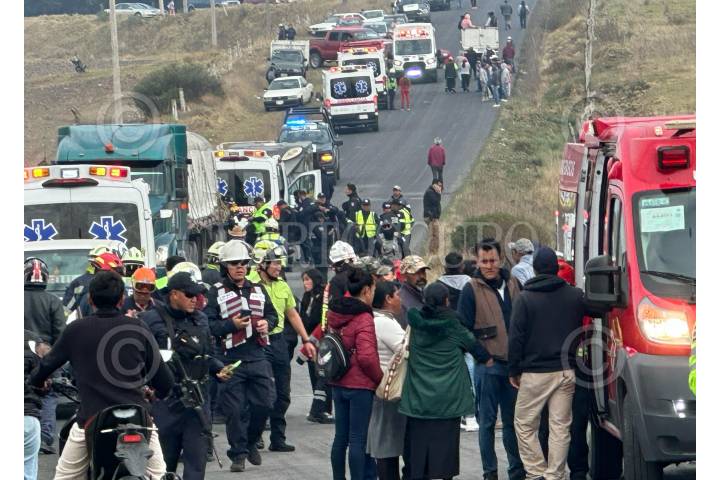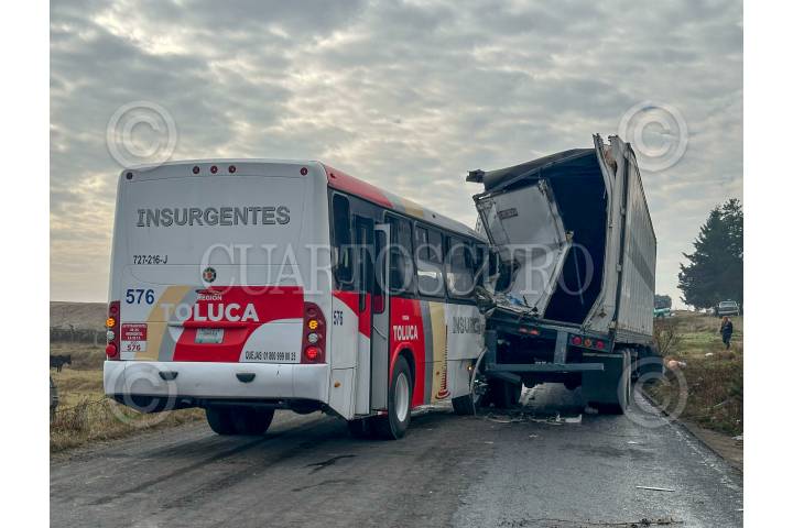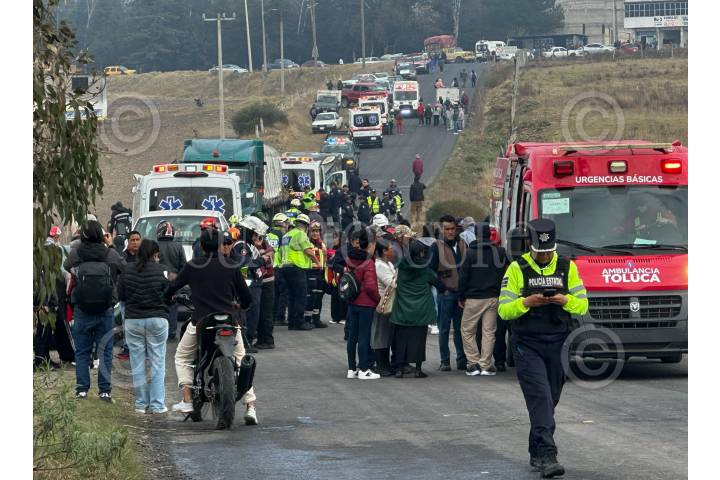 ALMOLOYA DE JUÁREZ, ESTADO DE MÉXICO, 20FEBRERO2025.- Un autobús de pasajeros y un tráiler chocaron esta mañana en la carretera libre Toluca-Ixtlahuaca, en la comunidad de San Bernabé, se registraron al menos 35 personas lesionadas que fueron atendidas por los cuerpos de emergencia. FOTO: CRISANTA ESPINOSA AGUILAR /CUARTOSCURO.COM