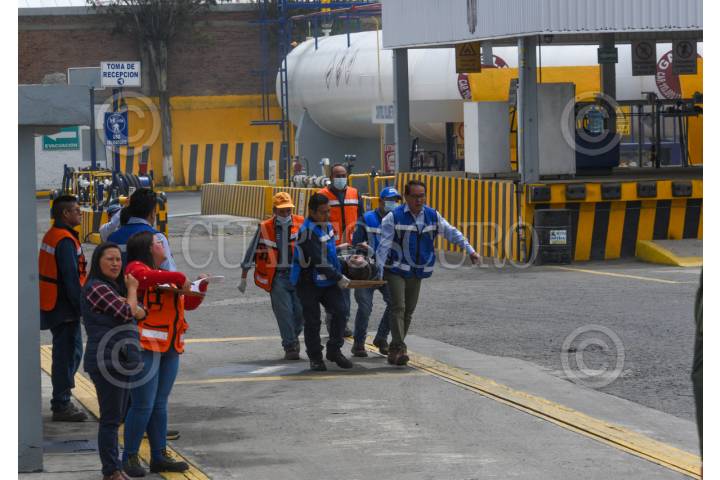 TOLUCA, ESTADO DE MÉXICO, 11JULIO2025.- Tres trabajadores heridos fueron atendidos como parte del Simulacro Nacional de Emergencias Químicas DINAPREQ 2025 que se realizó este día en una distribuidora de gas ubicada en la avenida Alfredo del Mazo en la ciudad de Toluca, el objetivo de este ejercicio es fortalecer la respuesta ante estos incidentes. FOTO: CRISANTA ESPINOSA AGUILAR /CUARTOSCURO.COM