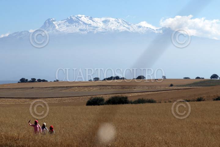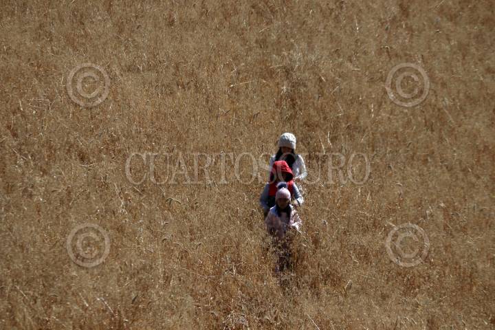 Tres hermanos juegan en un campo de avena, a lado de la carretera federal Xochimilco-Oaxtepec.